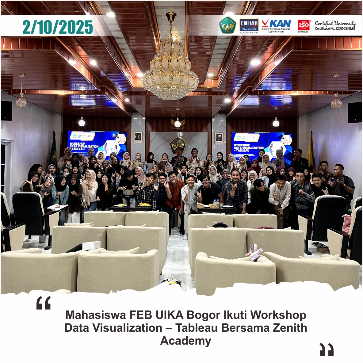 Bogor, 2 Oktober 2025 – Fakultas Ekonomi dan Bisnis (FEB) Universitas Ibn Khaldun (UIKA) Bogor bekerja sama dengan PT. Solusi Digital Kreasindo (Zenith Academy), mitra resmi Tableau di Indonesia, menyelenggarakan Workshop Data Visualization – Tableau di Ruang Conference 2, Gedung Rektorat Kampus UIKA Bogor, Jl. KH. Sholeh Iskandar Km.2 Bogor, Kamis (2/10).
